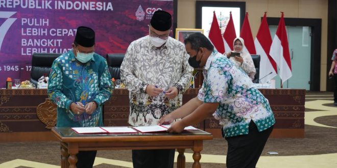 NUSAKALIMANTAN.COM, Palangka Raya – Sekretaris Daerah Prov. Kalteng Nuryakin menghadiri Acara Penandatanganan Kesepakatan Bersama (MoU) antara Pemprov. Kalteng dengan Institut Pertanian Bogor (IPB) Tentang Kerjasama Penelitian, Pembangunan dan Pengembangan Daerah di Prov. Kalteng, bertempat di Aula Jayang Tingang, Kantor Gubernur Kalteng, Sabtu (20/8/2022).