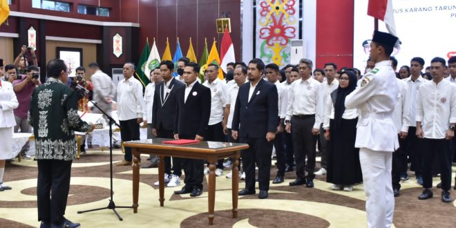 NUSAKALIMANTAN.COM, Palangka Raya – Sekretaris Daerah Provinsi Kalimantan Tengah (Prov. Kalteng) H. Nuryakin atas nama Gubernur Kalteng H. Sugianto Sabran mengukuhkan dan melantik Pengurus Karang Taruna Prov. Kalteng Periode 2023-2028. Pengukuhan dan pelantikan digelar di Aula Jayang Tingang, Kantor Gubernur Kalteng, Jumat (31/3/2023).