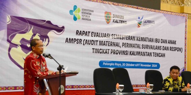 NUSAKALIMANTAN.COM, Palangka Raya – Dinas Kesehatan Provinsi Kalimantan Tengah (Dinkes Prov. Kalteng) menggelar Rapat Evaluasi Semester Kematian Ibu dan Anak AMPSR (Audit Maternal Perinatal Survailans dan Respons), bertempat di Hotel Aquarius Palangka Raya, Kamis (31/10/2024). Kegiatan dibuka oleh Kepala Dinas Kesehatan Suyuti Syamsul.