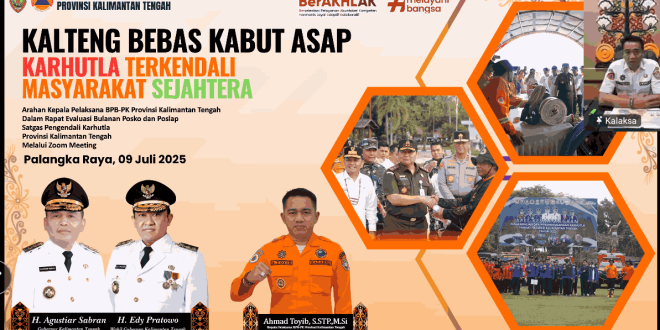 NUSAKALIMANTAN.COM, Palangka Raya – Badan Penanggulangan Bencana dan Pemadam Kebakaran (BPB-PK) Provinsi Kalimantan Tengah (Prov. Kalteng) melaksanakan Rapat Evaluasi Bulanan Satgas Pengendali Kebakaran Hutan dan Lahan (Karhutla), pada Rabu (9/7/2025) secara daring melalui Zoom Meeting.
