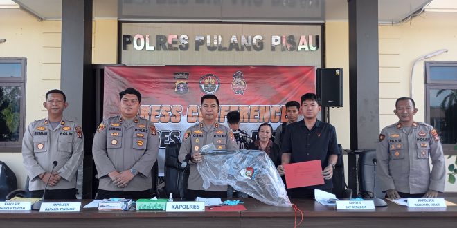 NUSAKALIMANTAN.COM, Pulang Pisau – Kapolres Pulang Pisau AKBP Iqbal Sengaji memimpin press conference kasus kebakaran hutan dan lahan (karhutla) di wilayah hukum polres setempat, Kamis (25/9/2025) sore di lobi Mapolres Pulang Pisau.