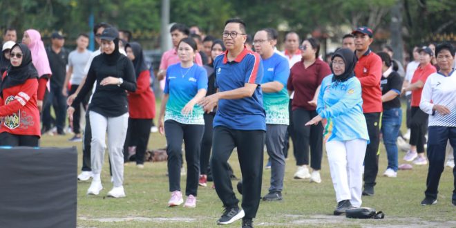 NUSAKALIMANTAN.COM, Palangka Raya – Ratusan Aparatur Sipil Negara (ASN) di lingkungan Pemerintah Provinsi Kalimantan Tengah (Pemprov Kalteng) mengikuti kegiatan Senam Pagi Bersama yang digelar di Halaman Kantor Gubernur Kalteng, Jumat (17/10/2025). Kegiatan rutin ini diselenggarakan oleh Pemprov Kalteng sebagai upaya menjaga kebugaran jasmani serta menumbuhkan semangat kerja para ASN.