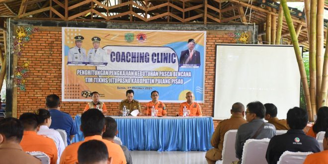 NUSAKALIMANTAN.COM, Pulang Pisau – Pemerintah Kabupaten (Pemkab) Pulang Pisau melalui Badan Penanggulangan Bencana Daerah (BPBD), menggelar acara pelatihan penghitungan kajian kebutuhan pasca bencana (Coaching Clinic.