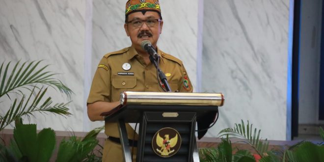 Asisten Perekonomian dan Pembangunan Sekretariat Daerah Prov. Kalteng, Herson B. Aden saat membacakan sambutan Gubernur pada kegiatan Sekolah Lapang Iklim (SLI) Tematik Tahun 2025