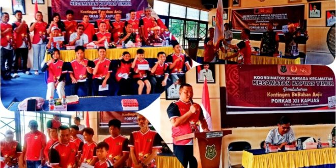 NUSAKALIMANTAN.COM, Kuala Kapuas – Pekan Olahraga Kabupaten (Porkab) ke 12, Kecamatan Kapuas Timur dalam ajang ini mendapatkan prestasi sebagai juara ke dua. Mempertahankan emas pada cabang olahraga bergengsi Sepak Bola. Pada Sabtu (1/11) pukul 09.30 WIB, bertempat di Aula Kantor Camat Kapuas Timur Jalan Trans kalimantan KM 9 Desa Anjir Serapat Baru Kecamatan Kapuas Timur, dilaksanakan Pembubaran Kontingan Bubuhan Anjir ( sebutan warga Kapuas Timur).