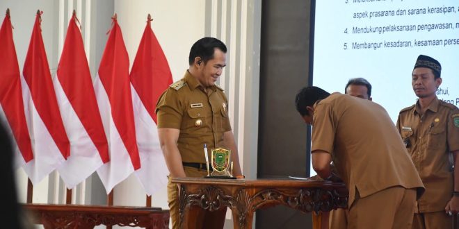 NUSAKALIMANTAN.COM, Pulang Pisau – Bupati Pulang Pisau H Ahmad Rifa’i didampingi Wakil Bupati H Ahmad Jayadikarta menghadapi kegiatan Pencanangan Gerakan Nasional Sadar Tertib Arsip (GNSTA) yang dilaksanakan di aula Banama Tinggang kabupaten setempat, Senin (3/11/2025).