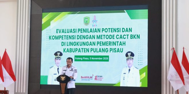 NUSAKALIMANTAN.COM, Pulang Pisau – Badan Kepegawaian dan Pengembangan Sumber Daya Manusia (BKPSDM) Kabupaten Pulang Pisau menggelar kegiatan Evaluasi Hasil Computer Assisted Competency Test (CACT) Badan Kepegawaian Negara (BKN) bagi Pejabat Administrator dan Pengawas, serta Sosialisasi ASN Corporate University (Corpu), Rabu (5/11/2025) di aula Banama Tingang Kantor Bupati Pulang Pisau.