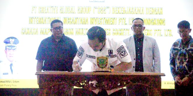 NUSAKALIMANTAN.COM, Pulang Pisau –  Pemerintah Kabupaten Pulang Pisau bersama PT Creative Global Group (CGG) melakukan penandatanganan memorandum of understanding (Mou) tentang pengembangan proyek hilirisasi dan agro industri terpadu berbasis padi, Rabu (12/11/2025) di Aula Banama Tinggang Kantor Bupati setempat.