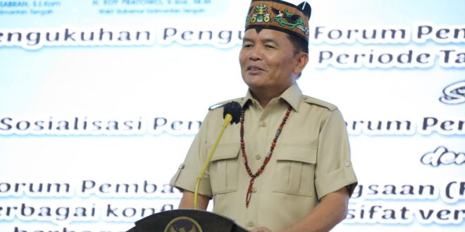 NUSAKALIMANTAN.COM, Palangka Raya – Gubernur Kalimantan Tengah Agustiar Sabran secara resmi mengukuhkan Pengurus Forum Pembauran Kebangsaan (FPK) Provinsi Kalimantan Tengah Periode Tahun 2025–2027, sekaligus membuka kegiatan Sosialisasi Penguatan Forum Pembauran Kebangsaan yang berlangsung di Aula Jayang Tingang Lantai I Kantor Gubernur Kalimantan Tengah, Jumat (21/11/2025).
