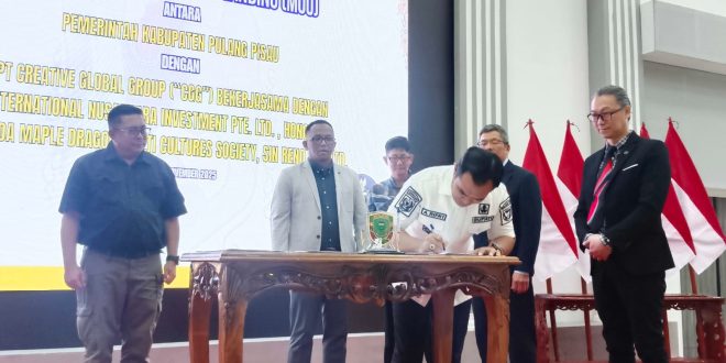 NUSAKALIMANTAN.COM, Pulang Pisau – Upaya mendorong Investasi di sektor pertanian, Pemerintah Kabupaten (Pemkab) Pulang Pisau bersama PT Creative Global Group (PT CGG) melaksanakan penandatanganan nota kesepahaman (MoU), Rabu (12/11/2025) di Aula Banama Tingang, Kantor Bupati Pulang Pisau,