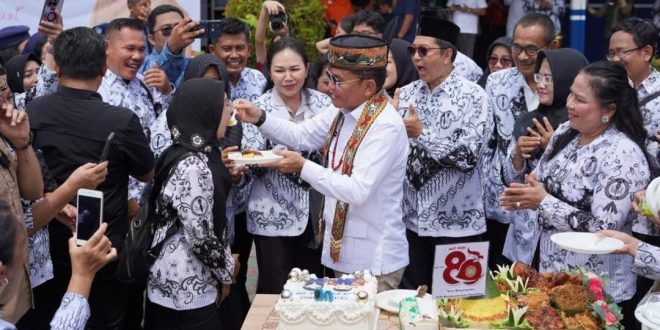 NUSAKALIMANTAN.COM, Palangka Raya – Gubernur Kalteng Agustiar Sabran memimpin Upacara Peringatan Hari Guru Nasional (HGN) Tingkat Provinsi Kalteng Tahun 2025 di Lapangan SMA Negeri 5 Palangka Raya, Selasa (25/11/2025). Upacara berlangsung khidmat dan diikuti para pendidik, peserta didik, serta jajaran pemerintah daerah sebagai bentuk penghormatan terhadap peran guru dalam dunia pendidikan.