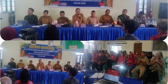 NUSAKALIMANTAN.COM, Kuala Kapuas – Desa Bangun Harjo Kecamatan Bataguh, menggelar kegiatan sosialisasi Pajak Bumi dan Bangunan (PBB) dan retribusi daerah. Acara dilaksanakan pada Selasa (2/12) pukul 12.00 WIB.