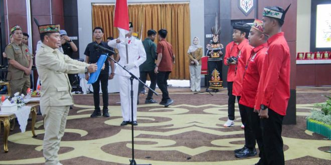 NUSAKALIMANTAN.COM, Palangka Raya – Gubernur Kalimantan Tengah Agustiar Sabran menghadiri sekaligus mengukuhkan Ketua Pemuda Dayak pada Musyawarah Nasional (Munas) Dewan Pimpinan Pusat (DPP) Perpedayak Tahun 2025 yang digelar di Aula Jayang Tingang (AJT) Lantai I Kantor Gubernur Kalimantan Tengah, Selasa (16/12/2025).
