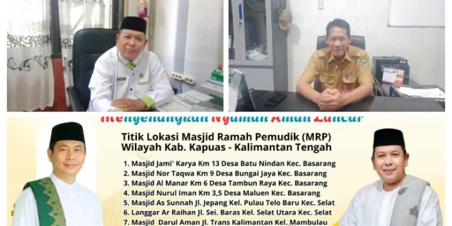 “Untuk wilayah Kabupaten Kapuas ada sembilan masjid yang masuk dalam program ini. Ada empat Masjid di Kecamatan Basarang, dua di Kecamatan Selat, satu di Kecamatan Kapuas Hilir, dan dua di Kapuas Timur yang mana semua berada di pinggir Jalan yang dilintasi saat mudik. Harapan kita bisa membantu masyarakat yang mudik dan mudah mudahan ada petugas dari kesehatan, kepolisian dan perhubungan yang membantu para pemudik,” harap H Hasbullah