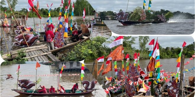 NUSAKALIMANTAN.COM, Kuala Kapuas – Rangkaian Hari Ulang Tahun Kota Kuala Kapuas ke 220 dan Ulang Tahun Pemerintah Kabupaten Kapuas ke 75 menampilkan rangkaian adat, di antaranya Banama Hai, Nambang Tamuei Mantir Hai, serta Nakep Pangaja Salutuan Raja Kapuas 2026. Acara dilaksanakan pada Senin (6/4) pagi. Kelurahan Pulau Kupang menurunkan armada 30 Klotok (perahu mesin kecil) berhias naga.