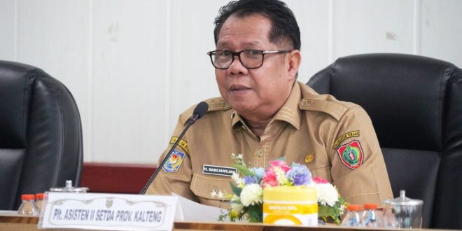 Plt. Asisten II Setda Provinsi Kalimantan Tengah, Darliansjah saat memimpin Rapat Pembahasan Skema (SKIM) Kredit UMKM Haguet Tahun 2026, bertempat di Ruang Rapat Bajakah Lantai II Kantor Gubernur Kalimantan Tengah, Senin (20/4/2026).
